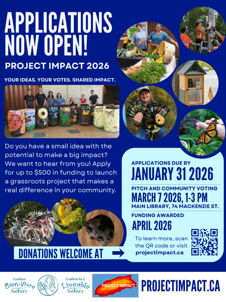 Project Impact has now funded 67 community projects all around Greater Sudbury! Applications for Project Impact 2026 are now open!